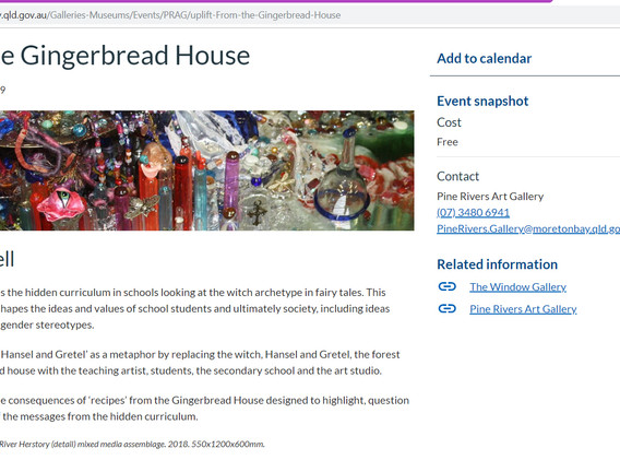 In 2019, I exhibited through the Moreton Bay Council's 'Uplift' program, which allows emerging and mid-career artists to exhibit in one of three exhibition spaces. The artists are again chosen through a selection process. The second of these exhibitions was in the Pine Rivers Window Gallery. This exhibition was intended as a lead up to the final exhibition, also being a fully immersive exhibition, albeit separated from the public by a window. The installation is intended to represent, the outside of the gingerbread house, enticing viewers to come 'inside'.